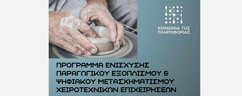 Πρόγραμμα ενίσχυσης του Παραγωγικού Εξοπλισμού και του Ψηφιακού Μετασχηματισμού των Χειροτεχνικών Επιχειρήσεων