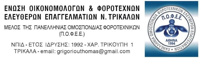 Το Επιμελητήριο Τρικάλων και η Ένωση Οικονομολόγων & Φοροτεχνικών Ελευθέρων Επαγγελματιών Ν. Τρικάλων, σας προσκαλούν στην ανοιχτή ενημερωτική εκδήλωση με θέμα: