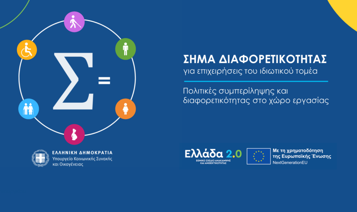 Δημοσιεύτηκε η πρόσκληση προς επιχειρήσεις του ιδιωτικού τομέα προκειμένου να συμμετάσχουν στο πιλοτικό πρόγραμμα «Μηχανισμός ανάλυσης και αξιολόγησης των δεδομένων για τις πολιτικές συμπερίληψης και διαφορετικότητας των επιχειρήσεων του ιδιωτικού τομέα και τη διαδικασία απονομής του Σήματος Διαφορετικότητας».